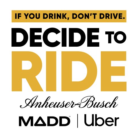 In 2021, Anheuser-Busch, Mothers Against Drunk Driving (MADD), and Uber announced a first-of-its-kind industry coalition centered on the shared goal of ending drunk driving. The coalition kicked off with a campaign called Decide to Ride that focuses on changing behavior and connecting with consumers before they even take the first sip and sharing a simple call to action – if you drink, don’t drive, Decide to Ride.